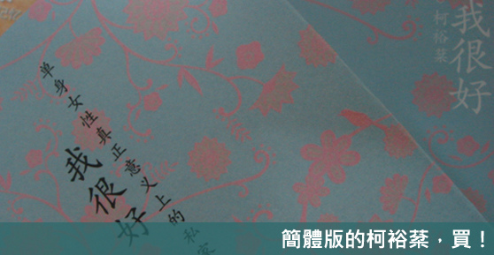 待在中國時,週末沒事做就習慣走路去書店晃晃,瞥瞥一些雜誌、翻翻一些書,直到我買到胡晴舫在台灣絕版的《旅人》和柯裕棻的《我很好》(台灣書名為:青春無法歸類)後,我發現,在中國,買書真的會上癮。