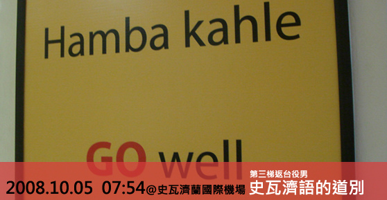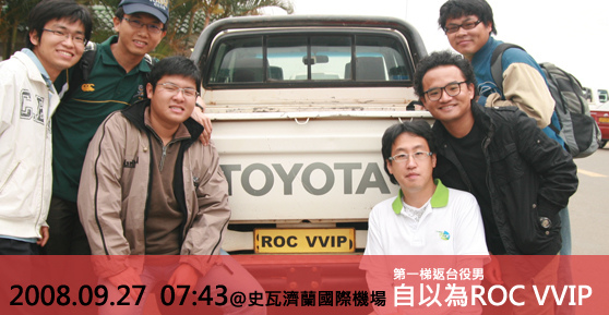 退伍即將滿一個月,同梯的弟兄也全部集合在台灣了,必須再次感謝一起在史瓦濟蘭體驗生命的役男們;當兵的意義到底是什麼?其實答案很簡單,當我哪天決定結婚時,第一個想通知的人絕對會是這些和我在史瓦濟蘭渡過年輕歲月的役男們。恭喜大家都退伍了,別忘了生命中最美好的十個月回憶,Somewhere Only We Know, Ten Months in Swaziland.