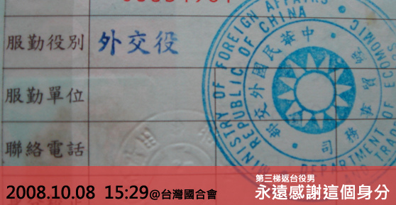 當我在面試場合說出自己與別人最不同的地方時,外交役的經驗早已提早一步證明了我的不同;謝謝外交役的經驗,讓我的視野與生命經驗,成為我在面試場合裡最好的「氣勢」。