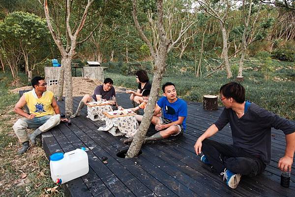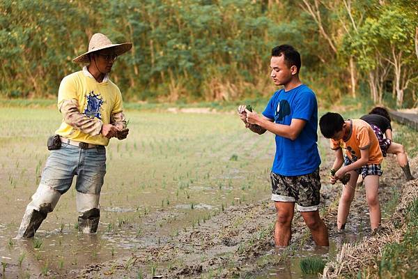 很有耐心的返鄉農夫帶著我們,先從看紀錄片開始,再繞著整個自給自足的田園生態環境說明,補完秧、洗完腳後,就坐在田邊享用下午茶;每一個動作、每一個腳步都充滿了歷程,是外地工作而掙扎想回家的歷程、是回家再創業的歷程,是手感的、滿身大汗的、實在的、甘願的,讓曾經寂靜的這裡又因為人的回來而變得更活,要知道,斷層可沒靜過,他們ㄧ直在等著離開的人,回來。