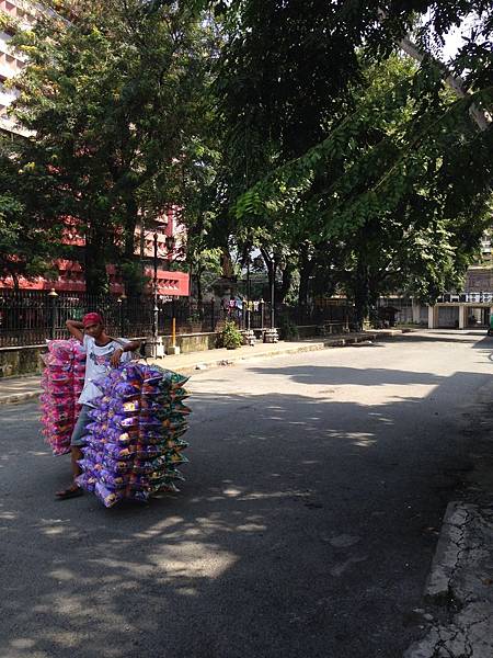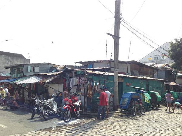 花了一半的時間在舊城,一半的時間在新城,後者就是曼谷台北東京上海香港都有的樣子,前者應該是馬尼拉才會有的獨特,巷口的三角窗就像社區中心,有吃有喝,大家在這邊剪頭髮、洗頭、躺在紙板上睡覺、玩遊戲、等搭車,甚至有只穿內褲的男生面對巷口洗澡。從我們的角度看當然是心酸,但他們還是笑笑地照樣在過,該收起的是我們的偏見。