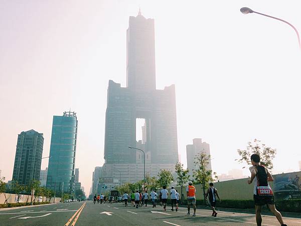 跑在高雄,有種奇妙的感覺,呼吸中似乎總有鹹鹹的海風味,讓整場馬拉松跑起來異常清醒;眼前即使是超高大樓,但海風貫穿在其間,不像在城市裡跑步,像在海邊跑步卻始終看不到海。