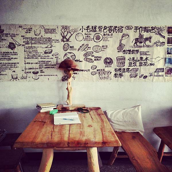 偶爾,我們也會去開發一些新景點,認識一些從外地移居至台東的生活新鮮人,從縱谷的稻田邊,晃到東海岸,跟著媽媽聞到滿屋子麵包香,認識了每天作手工麵包的老闆,有時候還有豆漿和有機豆腐教學;很有意思的麵包老闆,用手插畫的麵包介紹,還寫了一段散文,老闆害羞地說:「我喜歡有氣質地作生意。」
